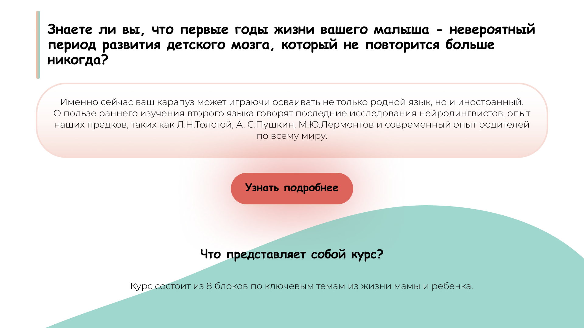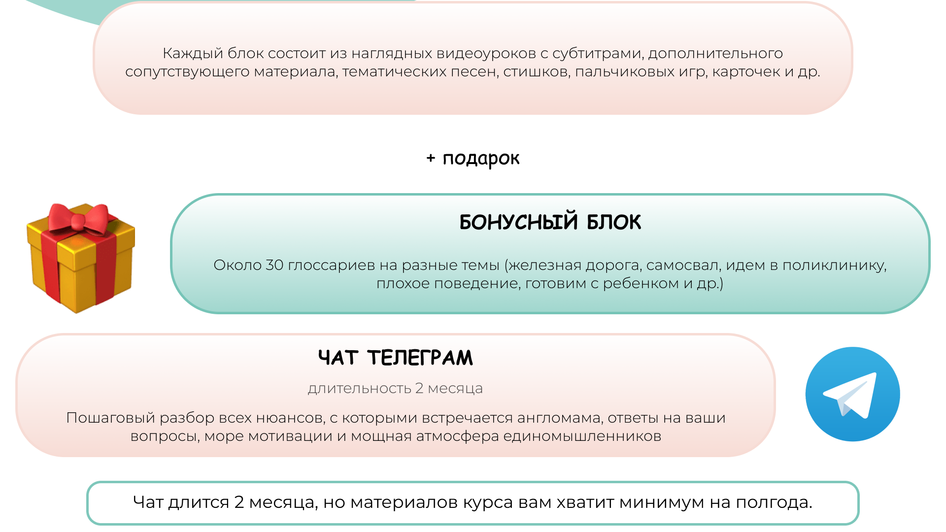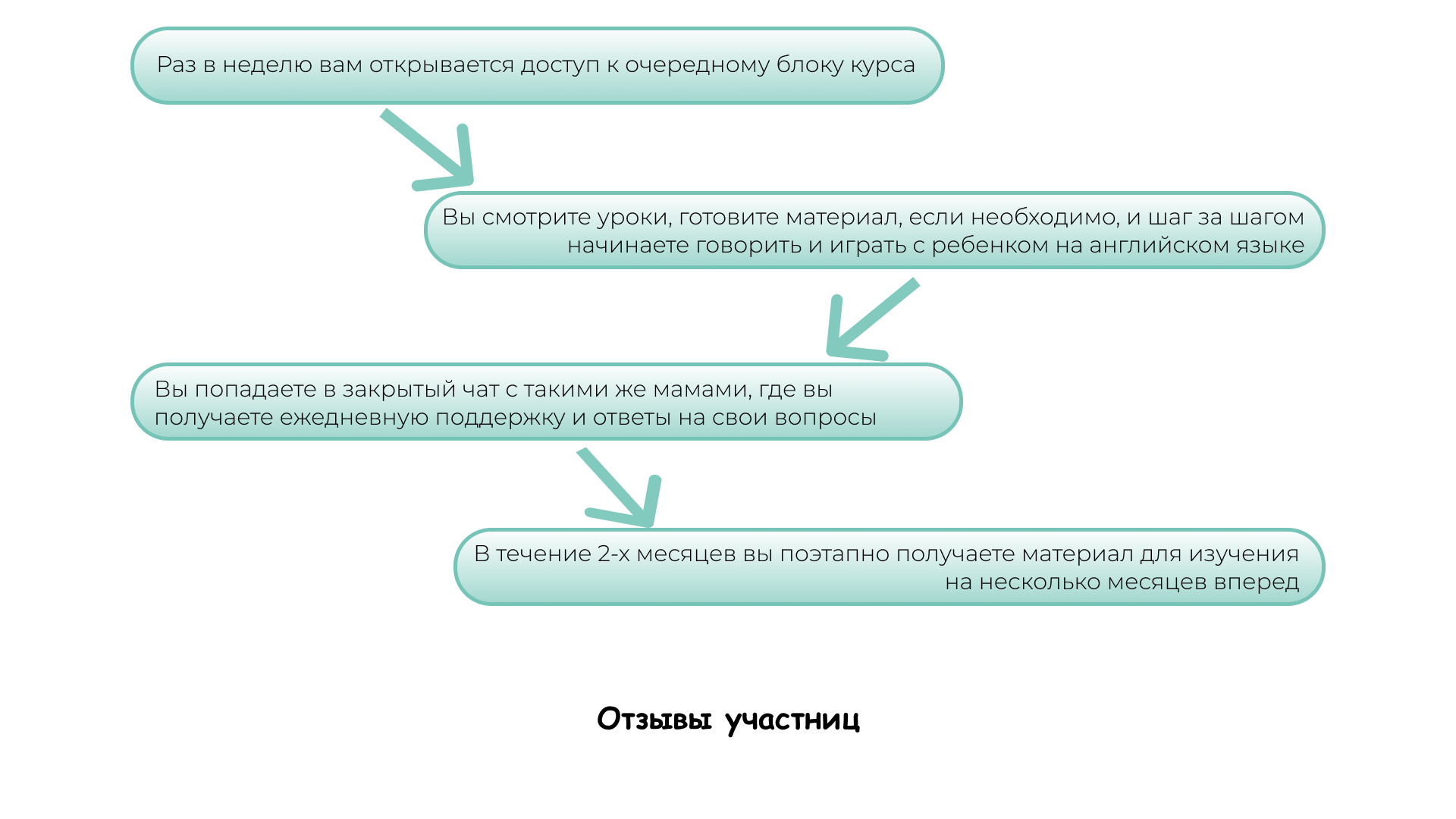 Вы подстраиваете курс под свой темп жизни, нет четких временных границ. Это может быть 5, 10, 20 мин английского в день на первых порах, в дальнейшем, благодаря плавному, поэтапному погружению и накопительному эффекту, вы сможете выйти на один, два, три (и более) часа английского в день без особой подготовки.